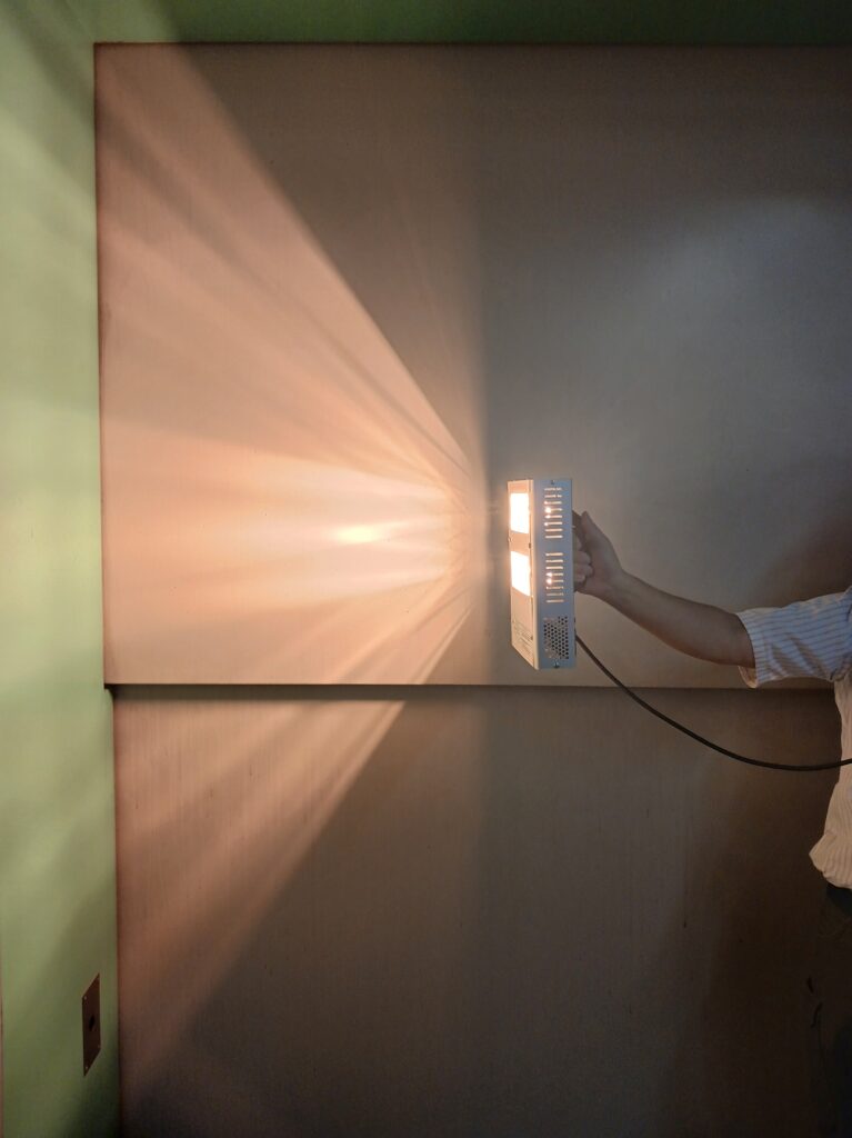 赤外線の中でも波長が短く、ガラスや空気を透過し吸収されることなく 、内部までエネルギーを届けることができます。(赤外線の中でも最もロスが少ない。)塗装の分野では、塗料の下の金属を加熱することができ、奥からしっかり乾燥させることができます。